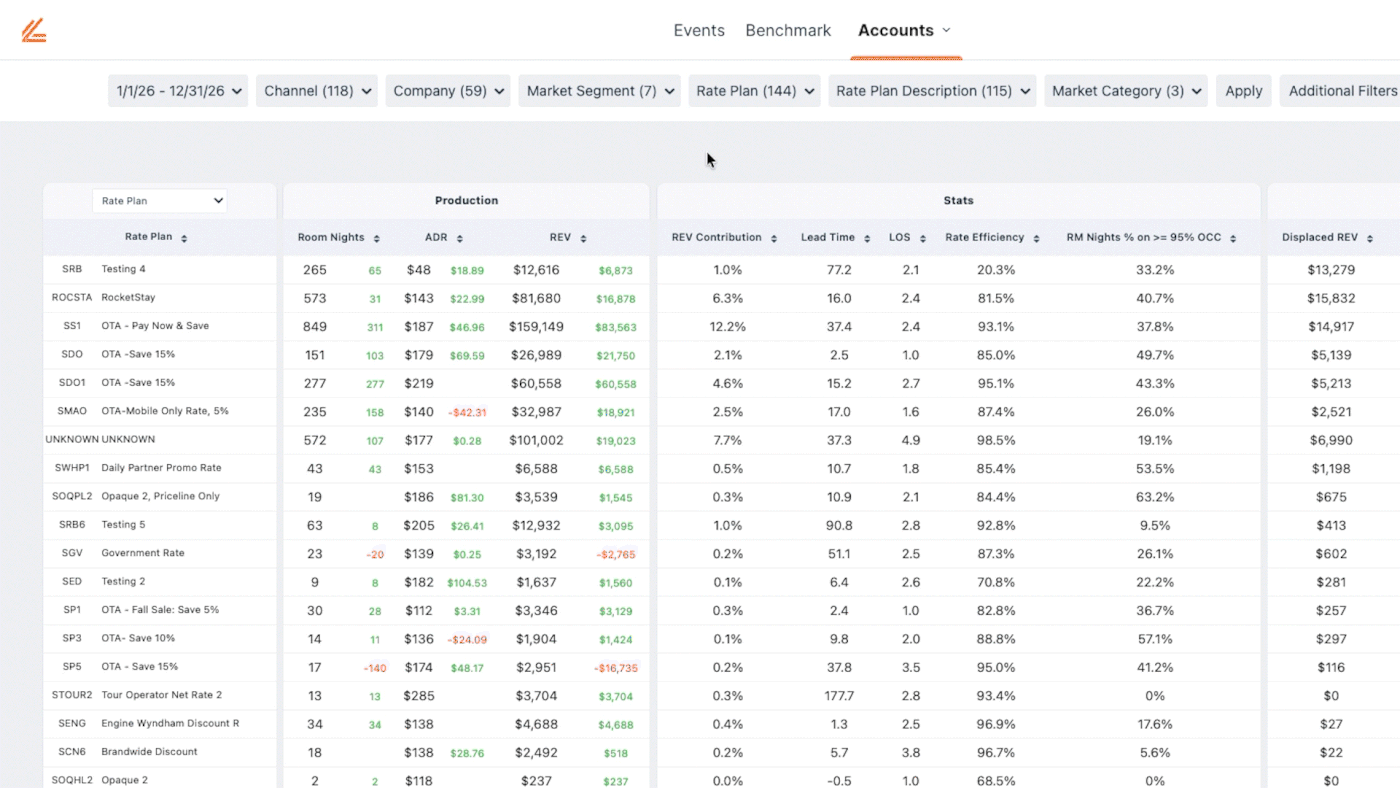 By using a tool like Lighthouse Performance, you can see which companies, and corporate accounts are using what rates, and even what the stay pattern attributes are for each rate plan.