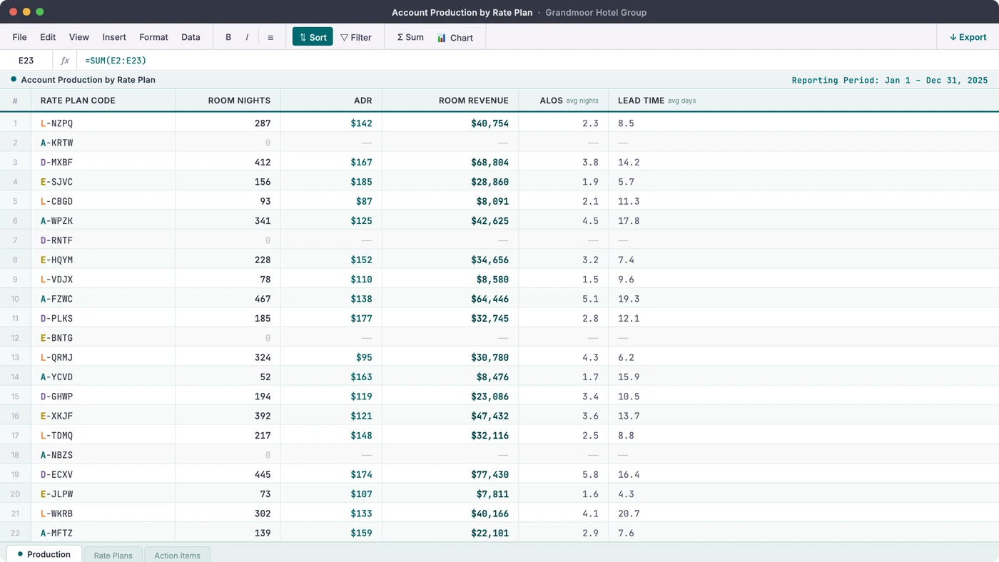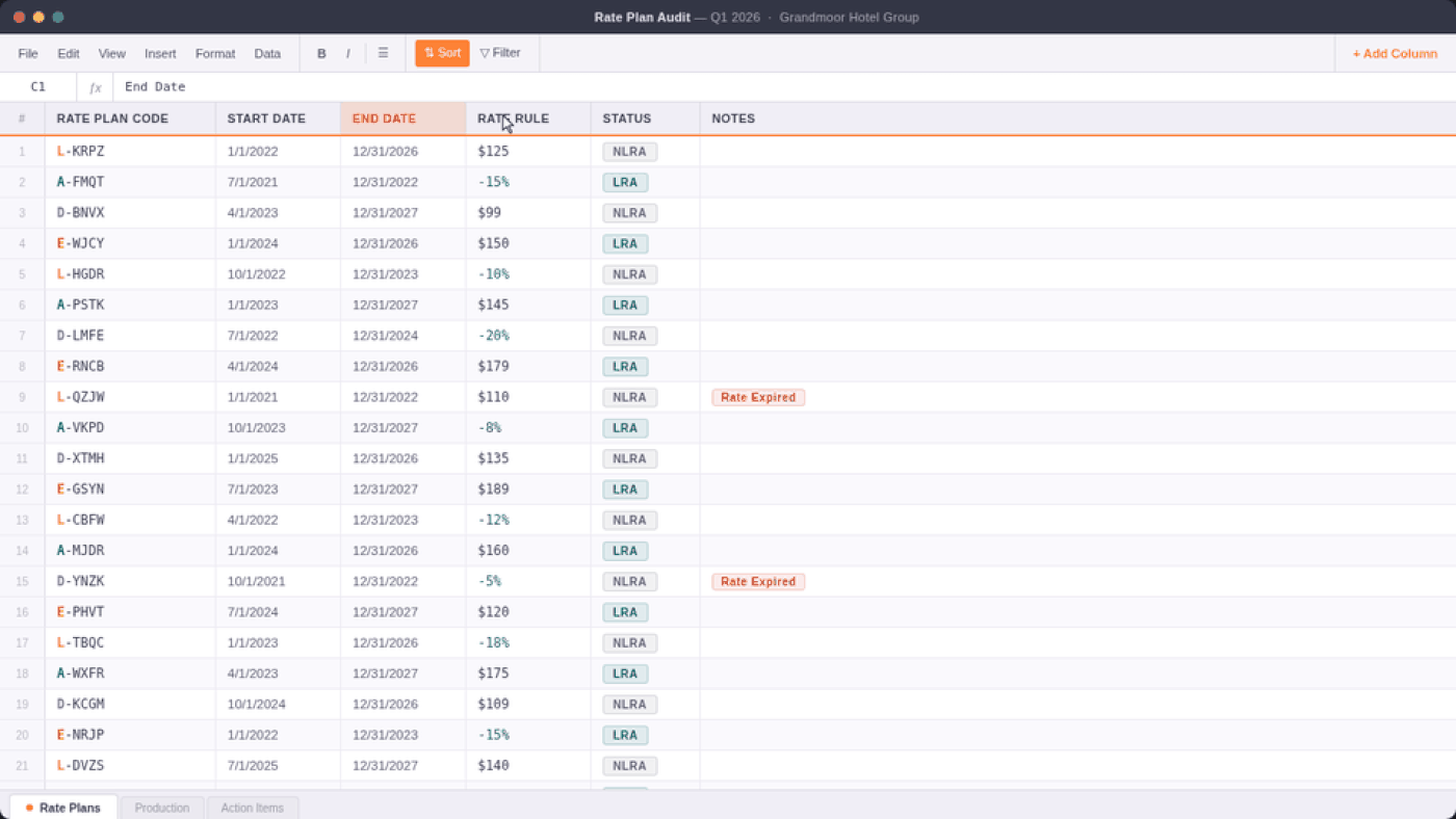 The result is a rate plan audit that takes hours instead of days, and that your whole commercial team can act on immediately, not just the person who built the spreadsheet.