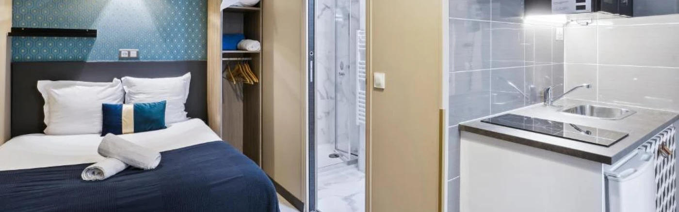 Résidence Aurmat Appart Hôtel is a fully renovated, 3-star aparthotel offering modern studios and apartments in Boulogne-Billancourt. The property caters to both short- and long-stay guests, with each unit featuring a fully equipped kitchenette, air conditioning, and personal touches like organic tea and coffee.